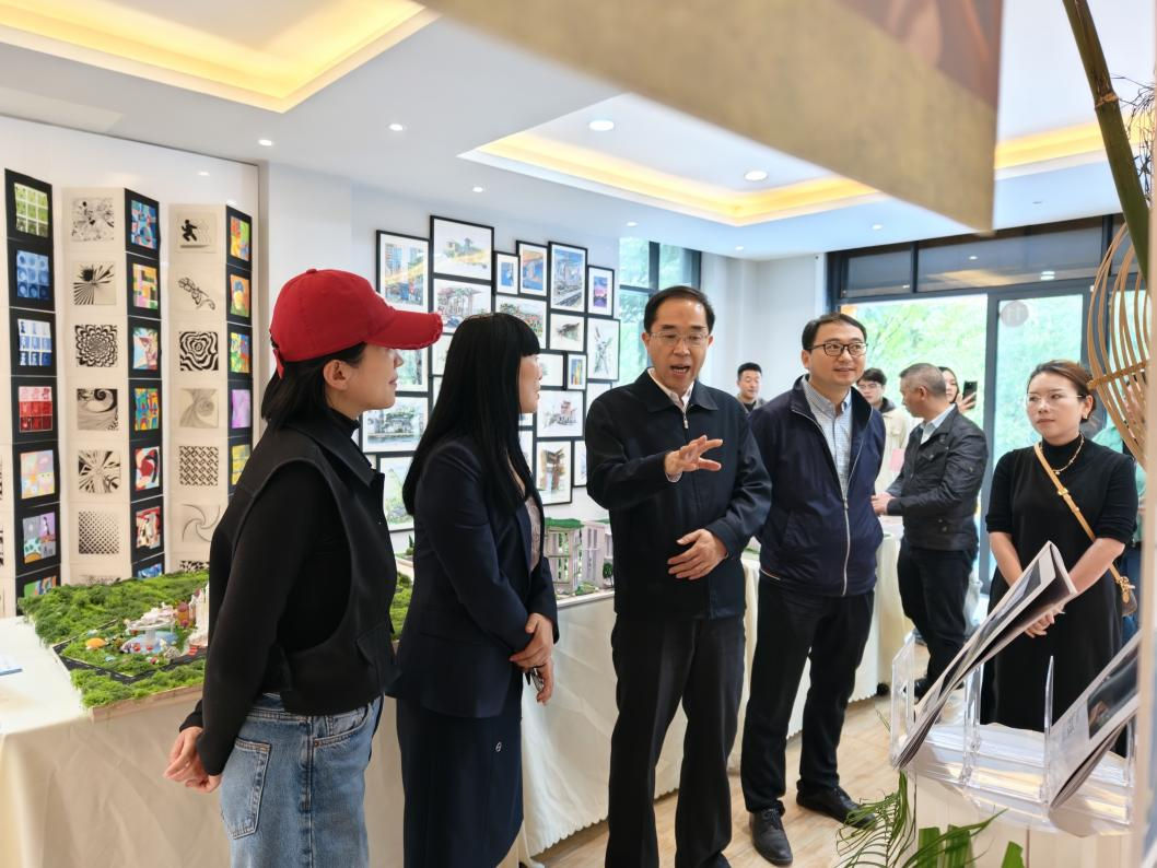 校党委书记战勇、校党委副书记彭洁、副校长肖小虹、教务处处长徐艺以及校团委书记杨兆瑞一行共同参观了本次展览在创业园的第二展厅。校领导们驻足细看各项学生作品,与学生亲切交流创作理念。战勇书记寄语学子:“设计不仅是艺术表达,更是解决问题的钥匙。希望同学们夯实专业根基,以创新驱动实践,让作品从展厅走向社会,为城市发展、乡村振兴创造真实价值,进一步促进成果转化。”
